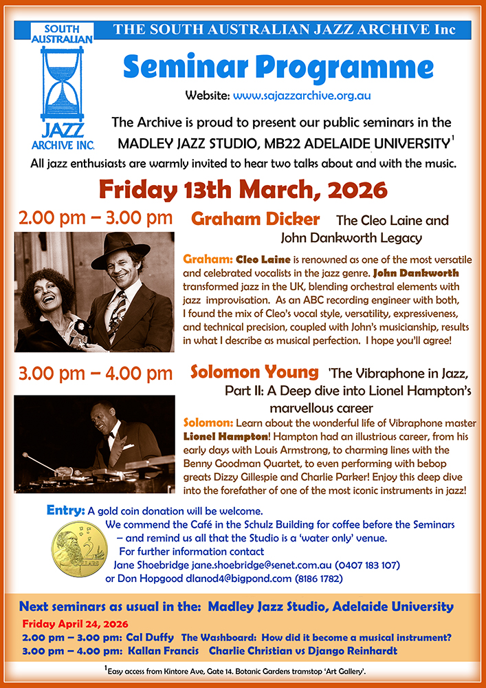 The SOUTH AUSTRALIAN JAZZ ARCHIVE Inc presents